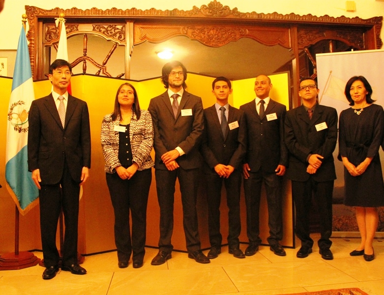 El programa de Becas del Gobierno del Japón para Guatemala inició en 1974, en esta ocasión, participó el primer becario guatemalteco en la recepción y junto con otros exbecarios, felicitaron a los 5 nuevos becarios y les brindaron consejos para que aprovechen al máximo la oportunidad de estudiar en Japón. La Embajada del Japón en Guatemala espera que su vida académica sea fructífera y que se conviertan en un puente que contribuya para estrechar las relaciones entre dos países.