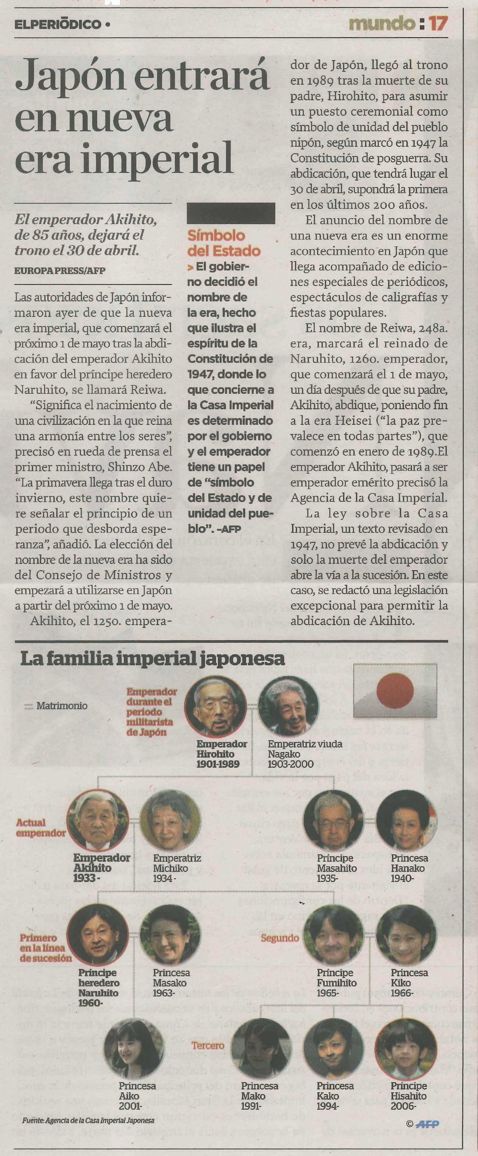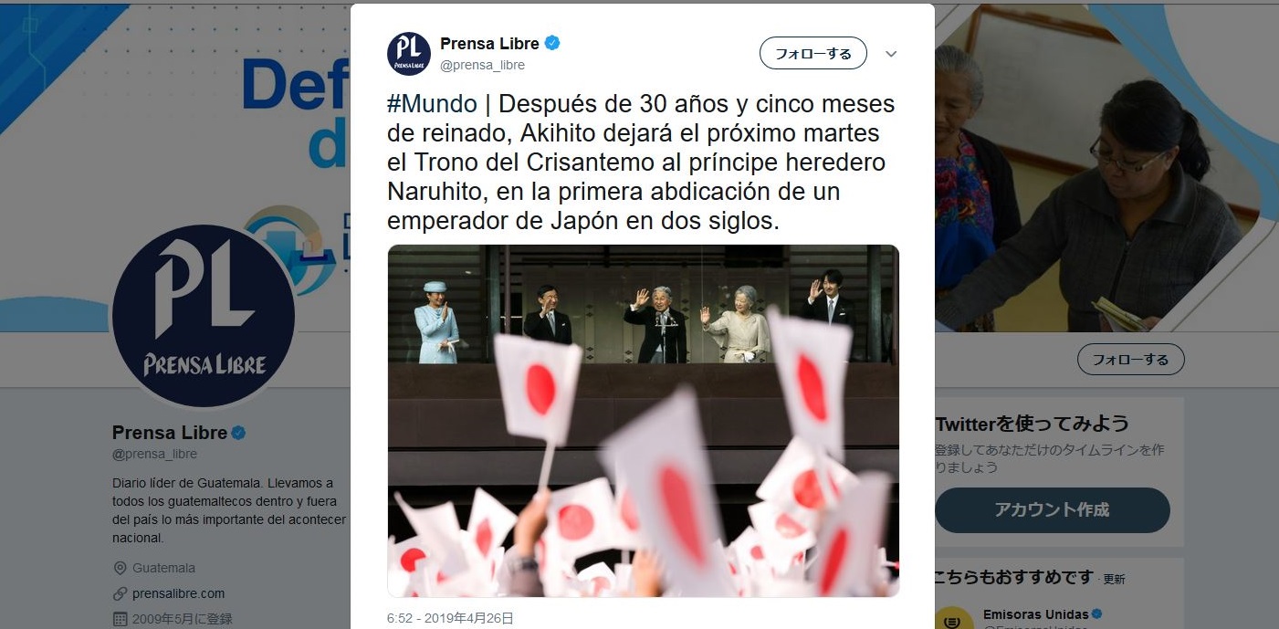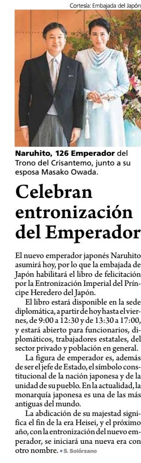 Noticias sobre la Entronización de Su Majestad El Emperador Naruhito 2019/5/24 Telediario Guatevisión Diario de Centro América Prensa Libre El Periódico Emisoras Unidas