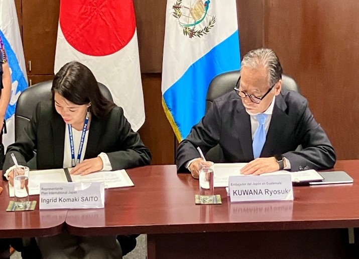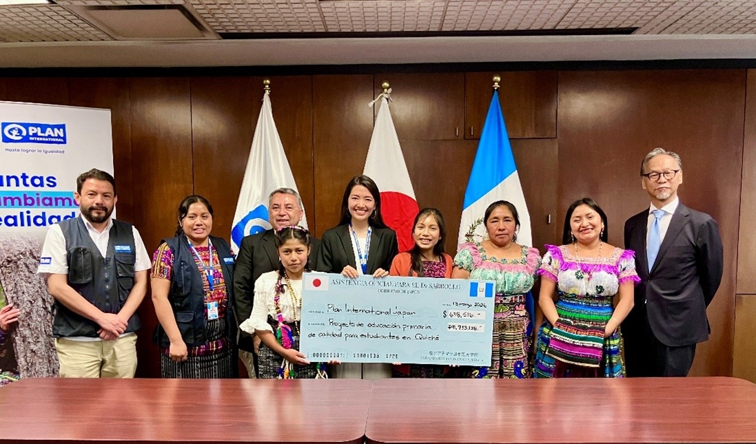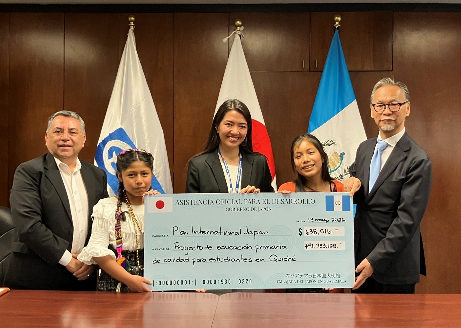 Sr. Veliz de Plan International Guatemala, alumna beneficiaria, Srta. SAITO de Plan International Japan,