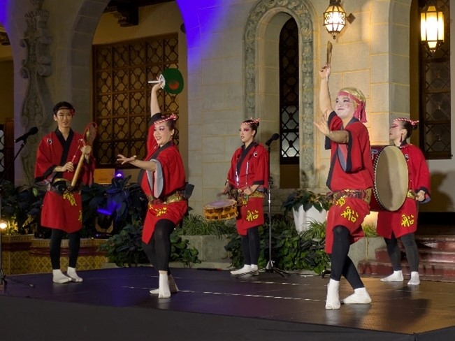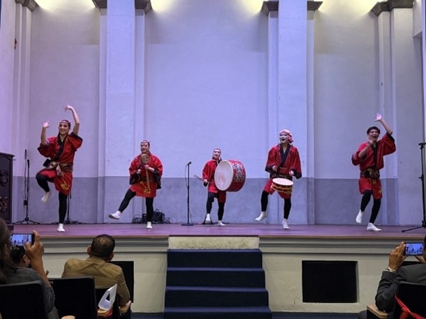 Así mismo, esa misma noche se llevó a cabo una presentación en el Palacio Nacional de la Cultura. Los asistentes, incluida la Ministra de Cultura y Deportes, Sra. Liwy Grazioso, quedaron profundamente cautivadas por el Awa Odori acompañado del enérgico ritmo del taiko japonés, así como por las interpretaciones que incorporaban elementos de danza moderna.