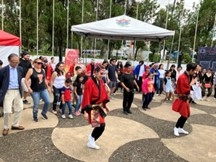 El día 16 se llevó a cabo el Festival de Danza Japonesa, organizado conjuntamente por la Embajada del Japón, la Municipalidad de Guatemala y la Oficina de JICA en Guatemala, en la cual “Takarabune” también presentó su espectáculo. Hubo momentos en los que numerosos asistentes bailaron junto al grupo mientras recibían una breve instrucción de Awa Odori, creando así un ambiente muy alegre y memorable.