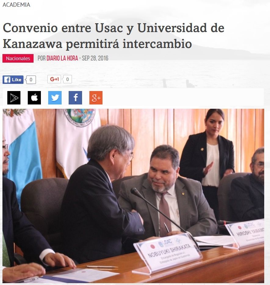 Artículos sobre el Convenio de Cooperación e Intercambio entre la USAC y la Universidad de Kanazawa