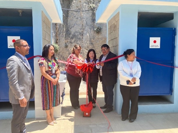4月17日、ケツァルテナンゴ県ケツァルテナンゴ市において、草の根無償資金協力「ケツァルテナンゴ市小学校2校衛生設備改善計画」にて建設したトイレ施設の引渡式を開催しました。式典には、当館阿部参事官のほか、ホルヘ・サンドバル同被供与団体プロジェクト責任者、ダニエル・フアレス サン・ホセ・チキラハ小学校校長、イングリッド・ロエチ シェパチェ小学校校長、両校教員、生徒約15名、保護者、職員等が出席し、和やかな雰囲気の下で行われました。式典終了後、阿部参事官は財団関係者とともに、完成した施設と校内を視察しました。