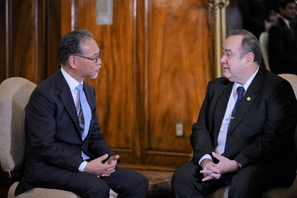 桑名大使は、着任後早急に信任状捧呈が実現したことへの感謝の意をジャマテイ大統領に表明し、日・グアテマラの友好の絆を更に強化し、様々な分野での協力を促進していきたいと伝えました。ジャマテイ大統領からは、日本からの継続的な支援に謝意が伝えられると共に、また、観光を含む多岐に亘る分野での連携について期待が述べられました。両者は、両国間の友好関係の強化に共に取りくんでいくことを確認しました。