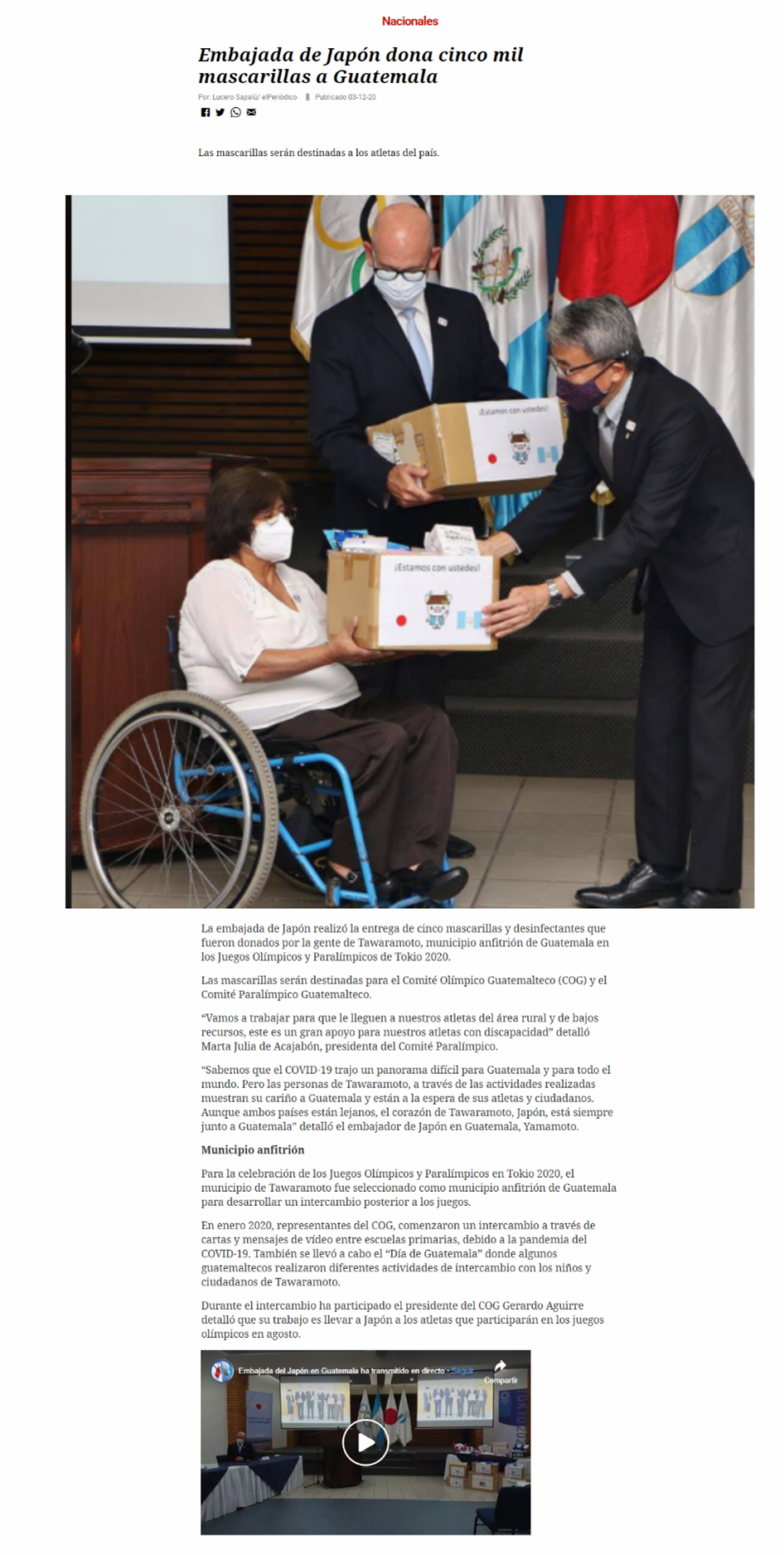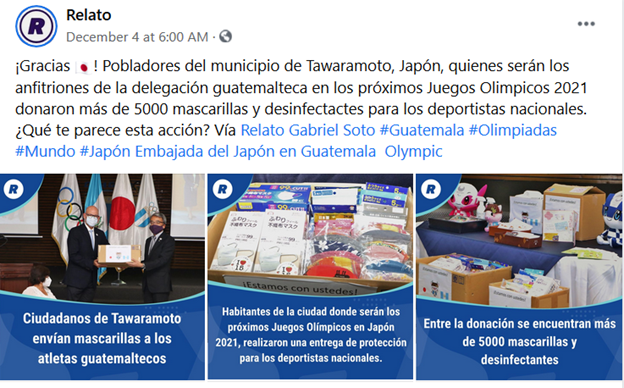 【東京2020】奈良県田原本町からの寄付マスク引渡式の実施:関連報道 令和2年12月16日 Televisión Claro Sports Artículos El Periódico Prensa Objetiva Relato Relato (SNS) Comité Olímpico Guatemalteco Comité Olímpico Guatemalteco